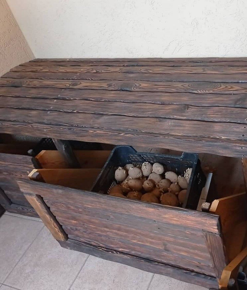 • Квартира (кладовка, под окном, у балконной двери): Подходят для картофеля и корнеплодов в темных ящиках с вентиляцией.
