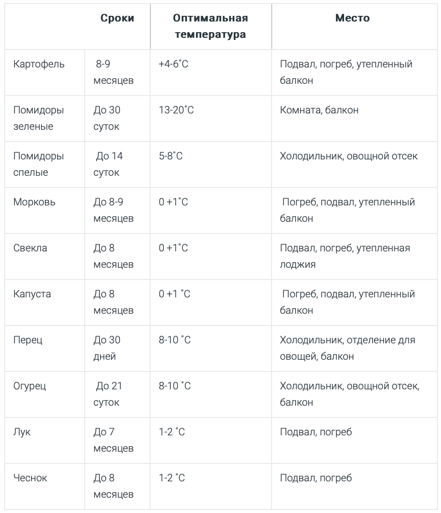Эта систематизированная информация поможет вам правильно организовать хранение овощей и продлить их свежесть.