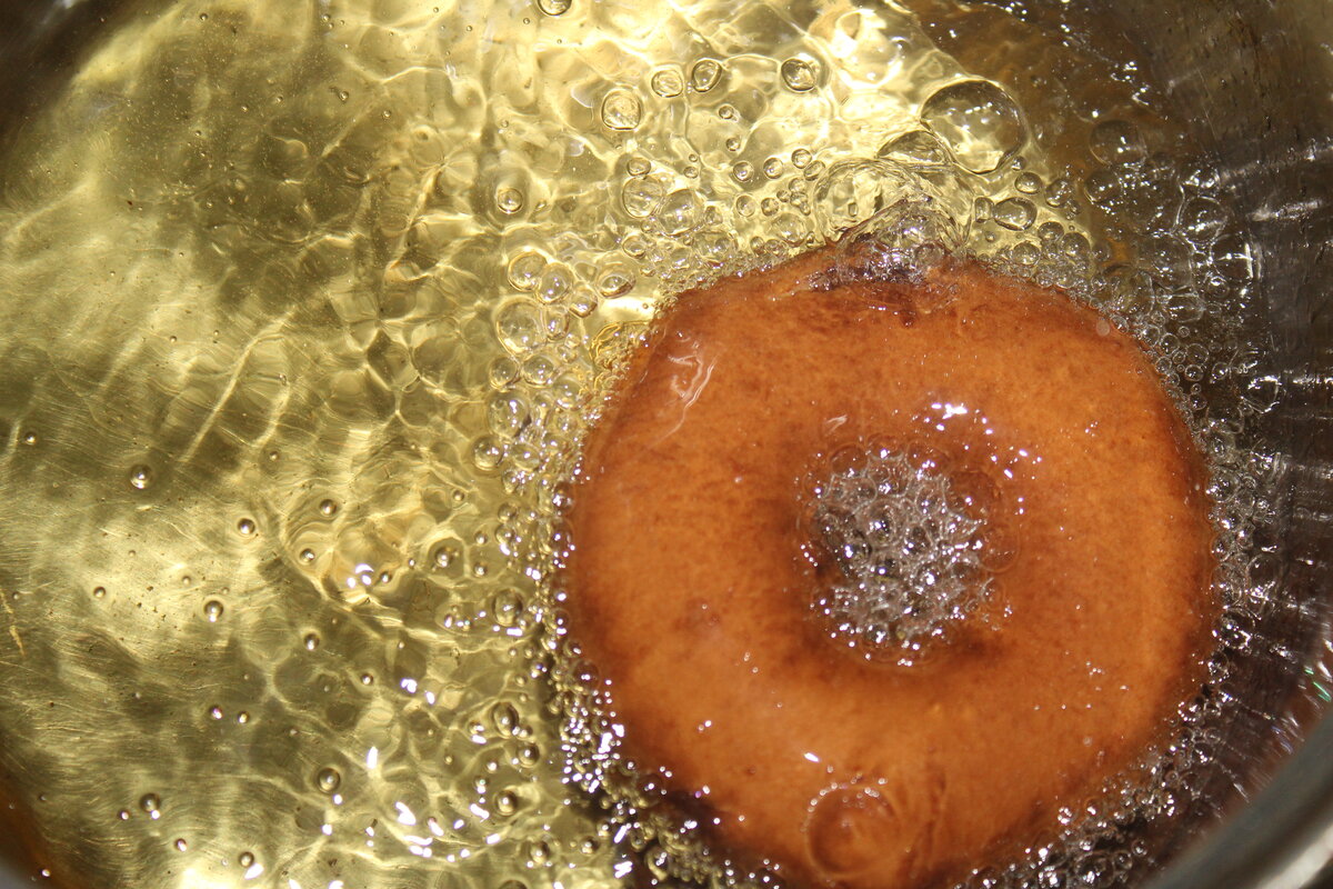 4. Жарим яблоки во фритюре: Разогрейте растительное масло в глубокой емкости (фритюрнице или кастрюле) до высокой температуры.