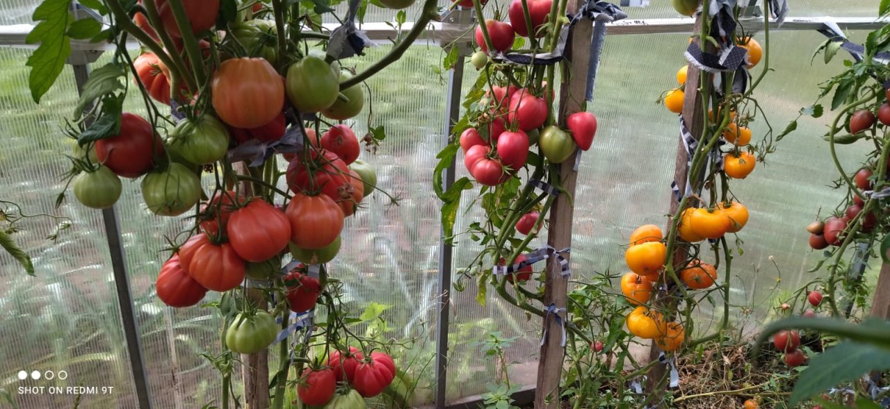 С грядок урожай уже собран, а кусты убраны, но в теплицах ее помидорное царство все еще процветает.