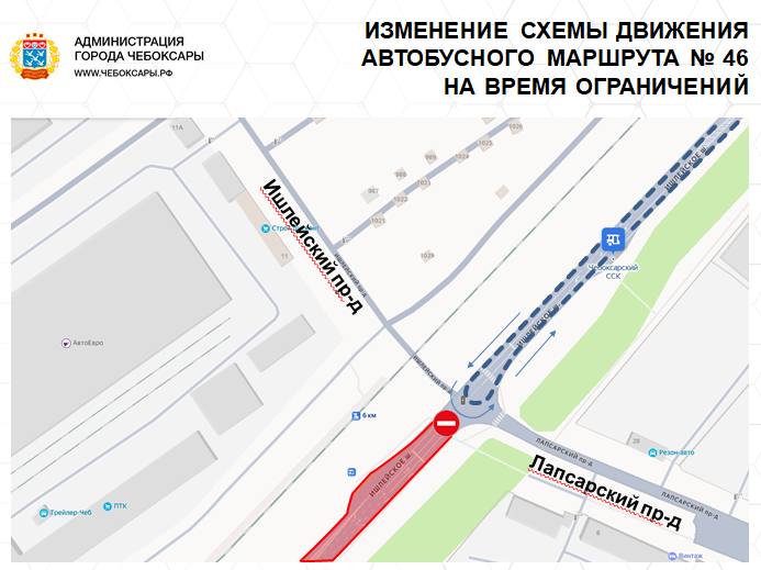 В Чебоксарах временно изменится схема движения маршрута № 46