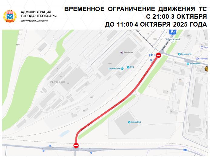 С пятницы, 3 октября, с 21:00 до субботы, 4 октября, до 11:00 железнодорожный переезд Лапсарский будет закрыт из-за работ по ремонту путей. В этот период перекроют часть Ишлейского шоссе – от Лапсарского проезда до трассы М-7. Автобус № 46 в сторону Новых Лапсар после 21:00 будет разворачиваться возле "Чебоксарского ССК". Конечная остановка автобуса временно будет изменена.