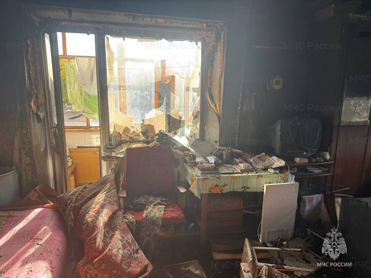 В результате пожара мебель в квартире была повреждена. Площадь возгорания составила пятнадцать квадратных метров. Пожар потушили за тридцать минут.