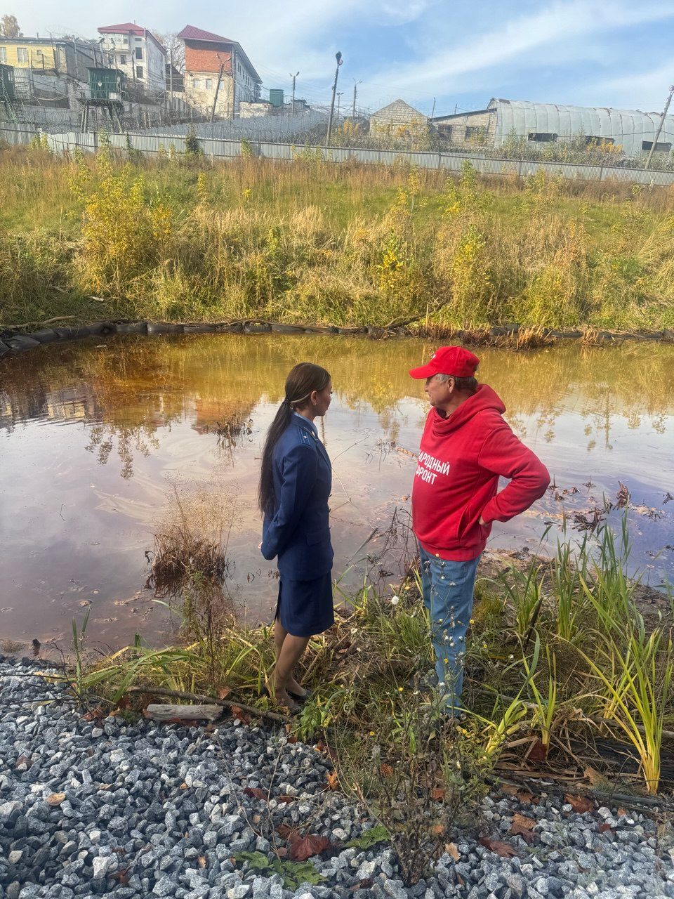 В связи с новым обращением прокуратура Калининского района совместно с представителями Общероссийского общественного движения "Народный фронт" провела проверку. В нижней части русла ручья выявлено наличие нефтепродуктов на площади 400 квадратных метров. Участок находится в ведении администрации города, по итогам проверки в адрес главы администрации внесено представление с требованием принять меры по устранению выявленных нарушений.