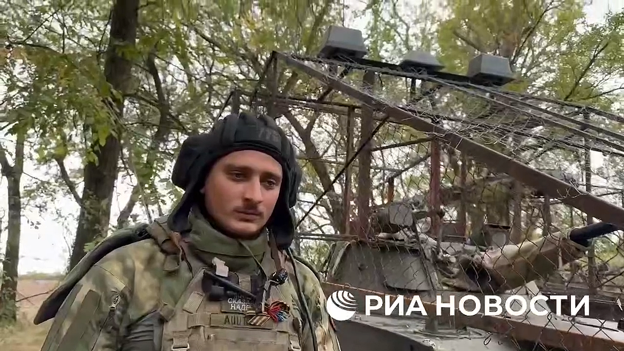Военный с позывным Шпагат объяснил, что защитить вращающуюся башню, которую нельзя обварить броней, помогает шторка из тросов. Нашлось место и рассказу о том, какие чудеса иногда случаются в бою.