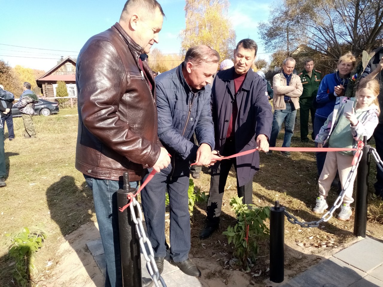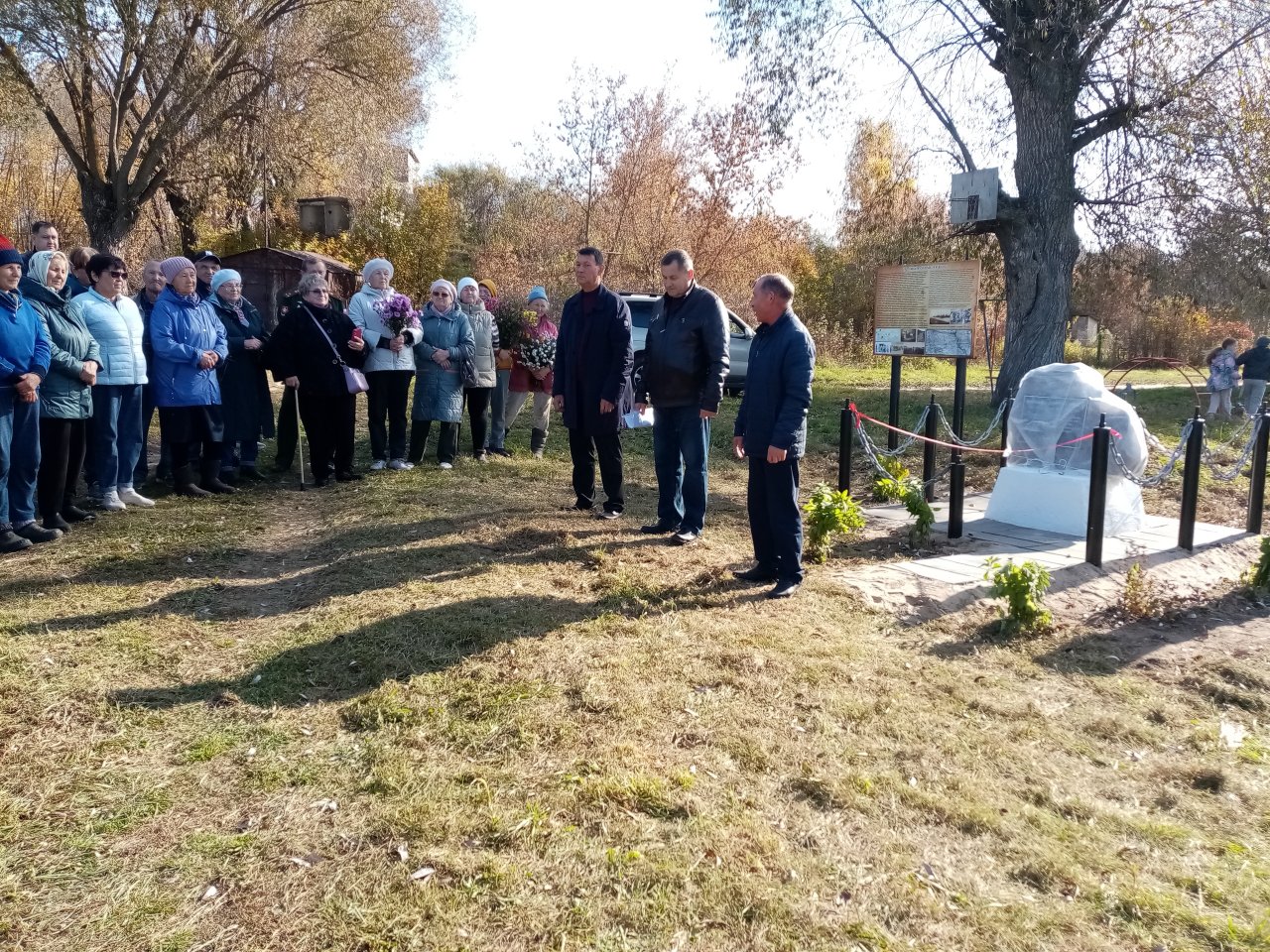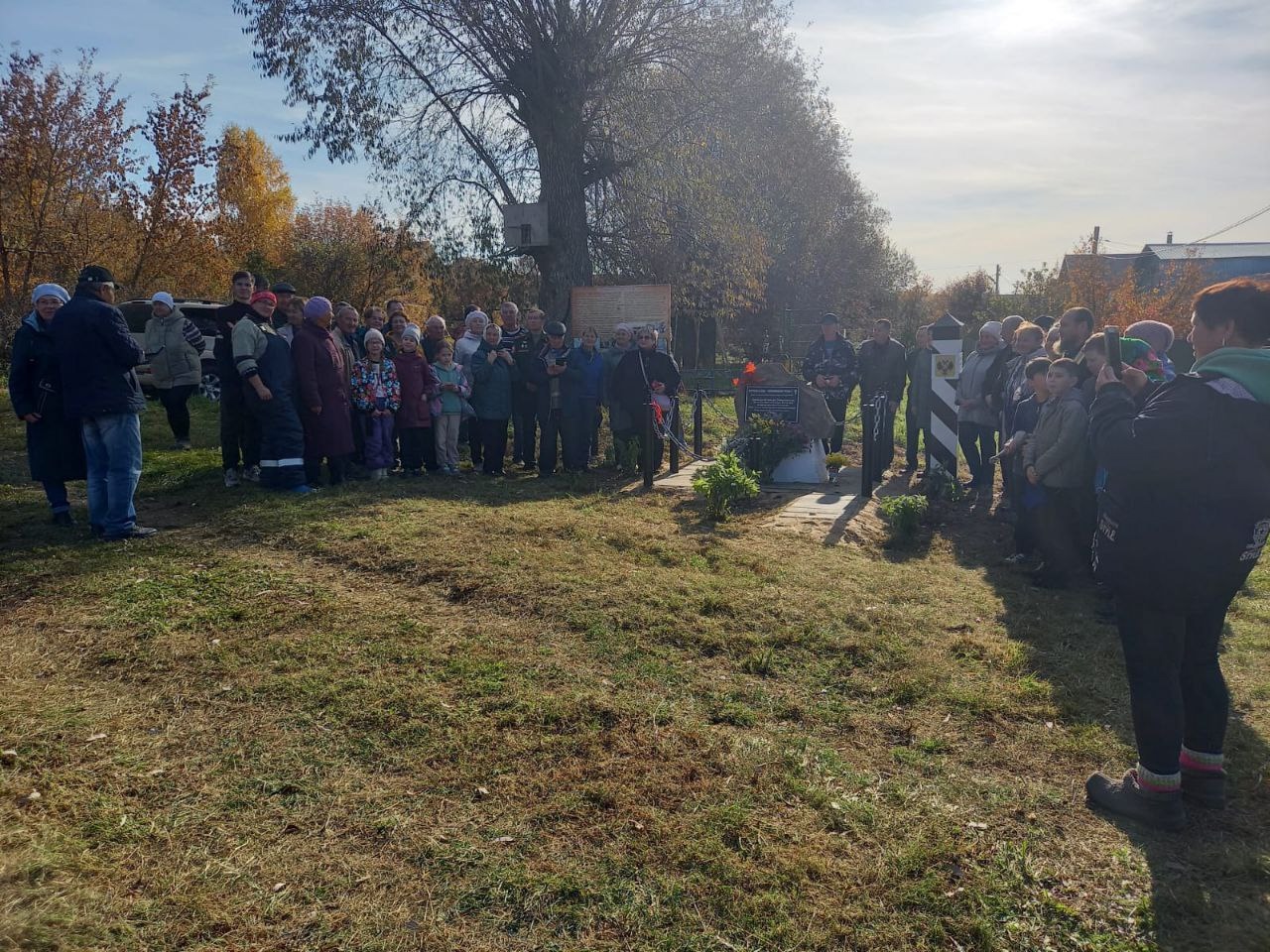 Идея установить такой памятник принадлежит жителям деревни. После торжественного открытия камень освятил настоятель церкви Введения во храм Пресвятой Богородицы отец Алексей.
