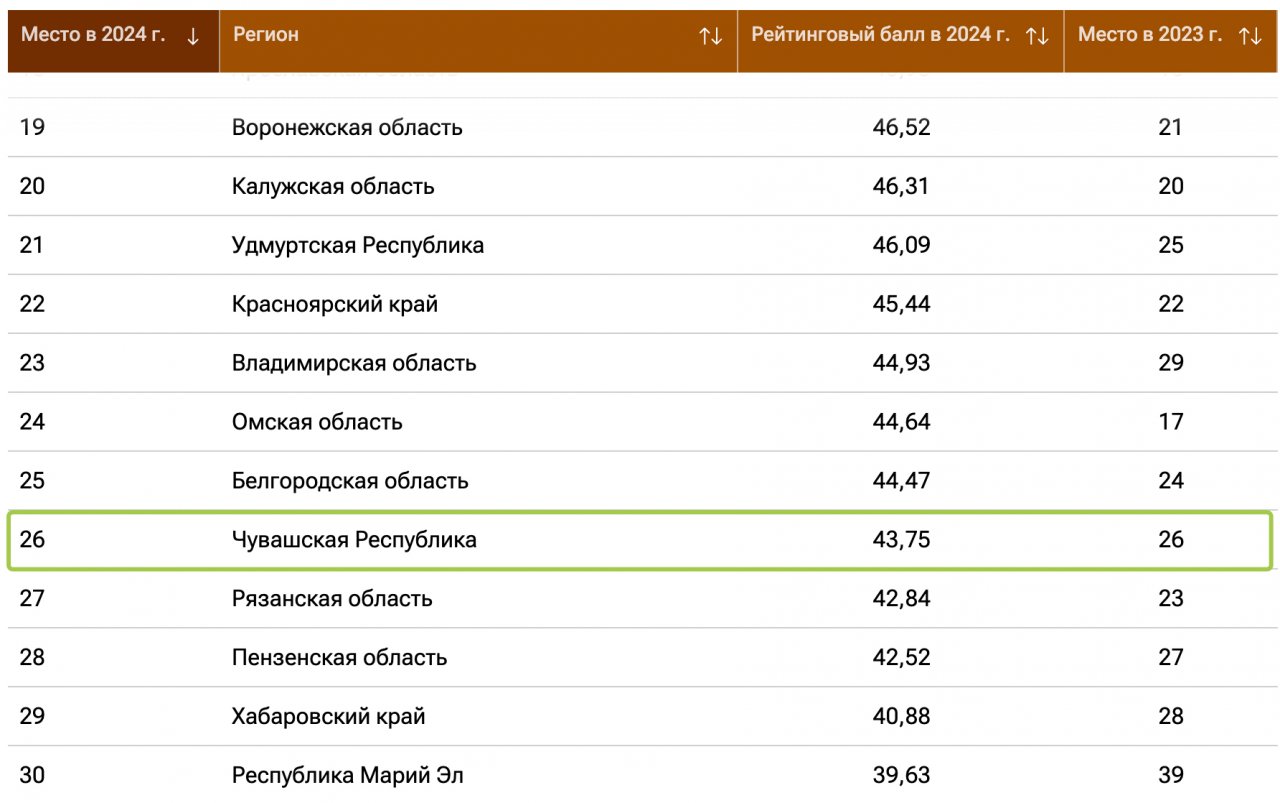 Москва, Татарстан и Санкт-Петербург возглавили рейтинг регионов по научно-технологическому развитию по итогам 2024 года. Замыкает список Ингушетия, Еврейская автономная область и Республика Алтай. У Чувашии 26-е место с набранными 43,75 балла. В 2023 году республика также занимала 26-е место.