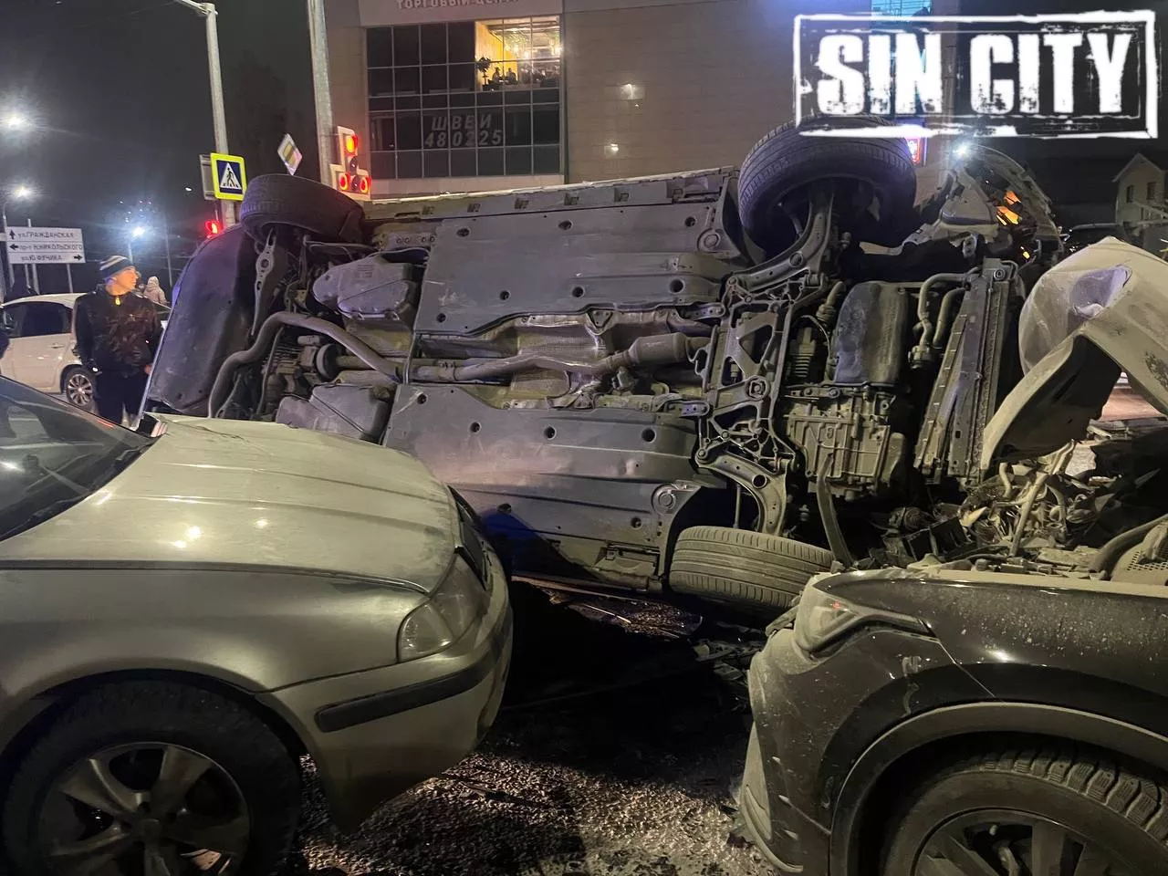 В Чебоксарах произошло массовое ДТП. Одна из машин перевернулась. Фото и видео поделились народные корреспонденты и канал "Город грехов Чебоксары".