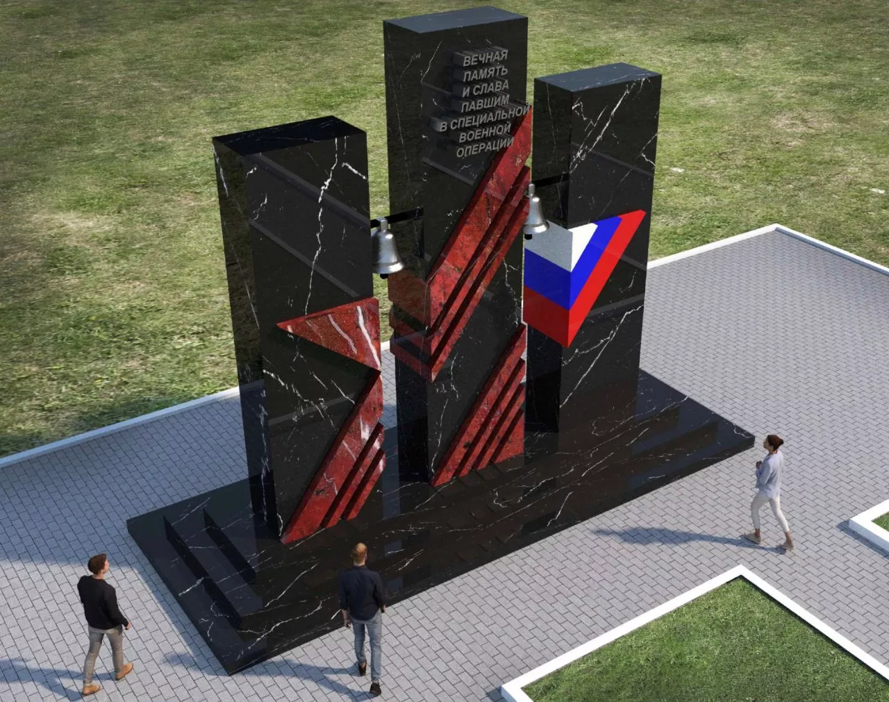 Для реализации проекта выбрали работу заслуженного архитектора России Альфреда Ибрагимова. Памятник будет состоять из трех стел из камня, объединенных звездой – символом героизма и мужества многонационального народа России. В композиции также предусмотрены колокола, которые символизируют память, веру в будущее и действия во имя мира.