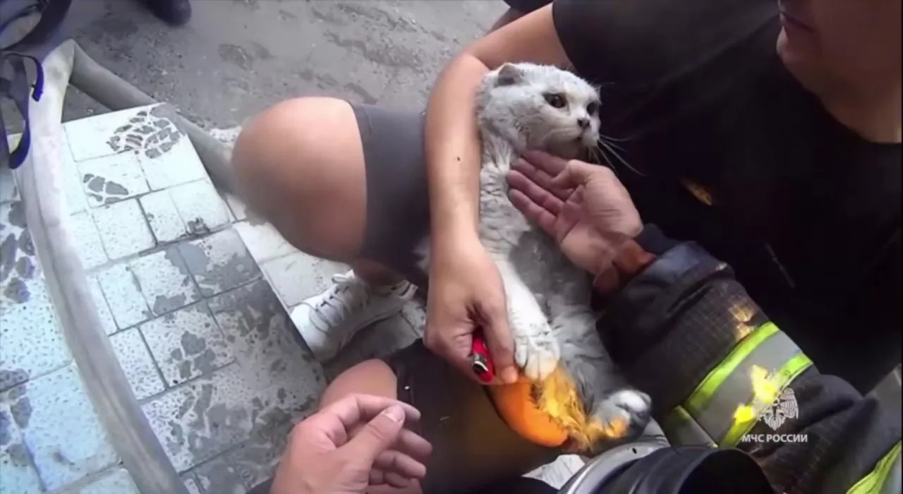 «Когда мы прибыли, там уже была бригада пожарных из 4-й части, которая и предприняла первоначальные действия, – вспоминает Александр Скворцов. – Нам поставили задачу проникнуть в квартиру через подъезд. Задымления в подъезде на тот момент не было, как и угрозы для людей, которых уже вывели на улицу. Проникнув в квартиру, дошли до балкона, чтобы открыть окна и проветрить помещение. Я планировал уже уйти оттуда, но заметил, что в углу балкона лежит кот. Была единственная мысль: попробовать реанимировать его, к чему я и приступил. Кота положил на бок, действуя по инструкции. Через 1, 5-2 минуты он пришел в себя, я вынес его на свежий воздух и передал хозяину».