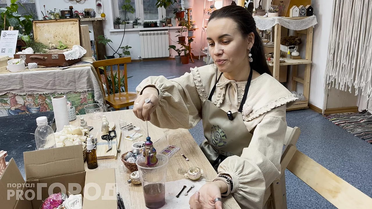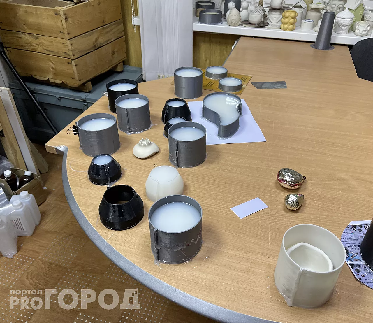 За это время увлечение превратилось в полноценное дело. В творческой студии рождаются свечи, декоративные изделия из гипса и даже украшения из бетона, которые потом отправляются на маркетплейсы и в сувенирные магазины.