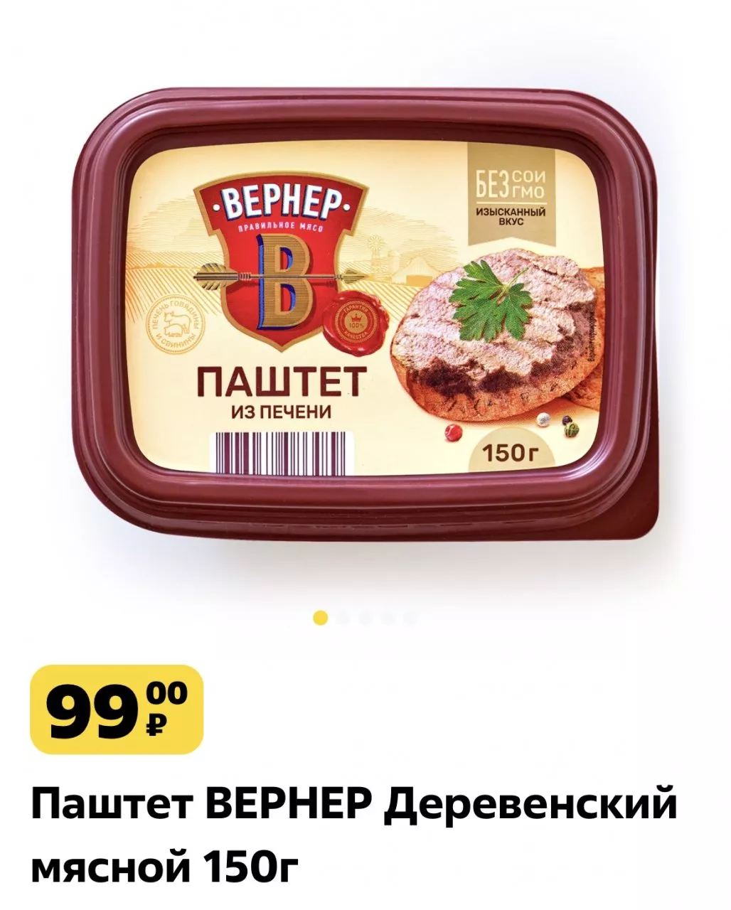 Начну с незаменимой вещи для быстрых и вкусных завтраков – это паштет из печени «Вернер». За смешную цену в 99 рублей я получаю отличный продукт, который прекрасно сочетается с тостами или хрустящими хлебцами. Вкус у него деликатный, без горечи, а консистенция нежная. Идеально для тех, кто ценит время и любит вкусно позавтракать. Я беру сразу две упаковки, потому что знаю, что на неделю точно хватит.