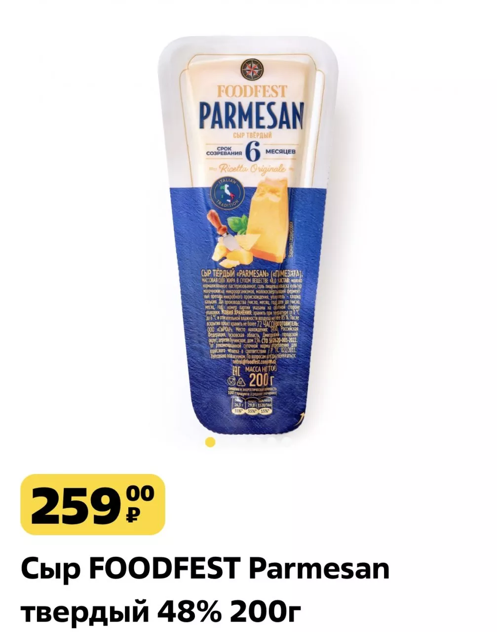 2. Пармезан твердый «Foodfest» - 259 рублей