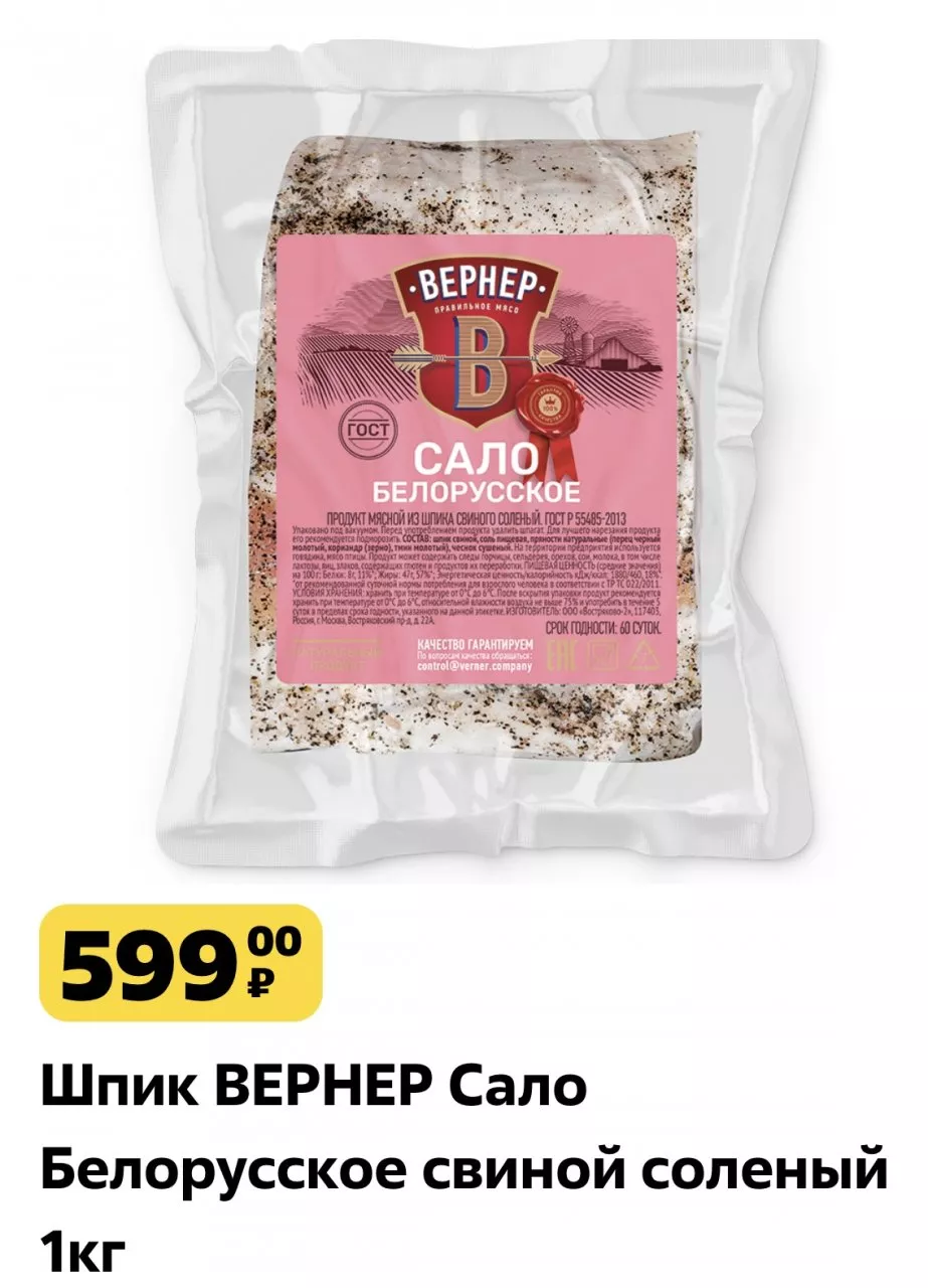 3. Сало белорусское «Вернер» - 599 рублей за кг
