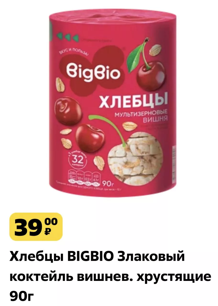 6. Хлебцы Bigbio мультизерновые с вишней - 39 рублей