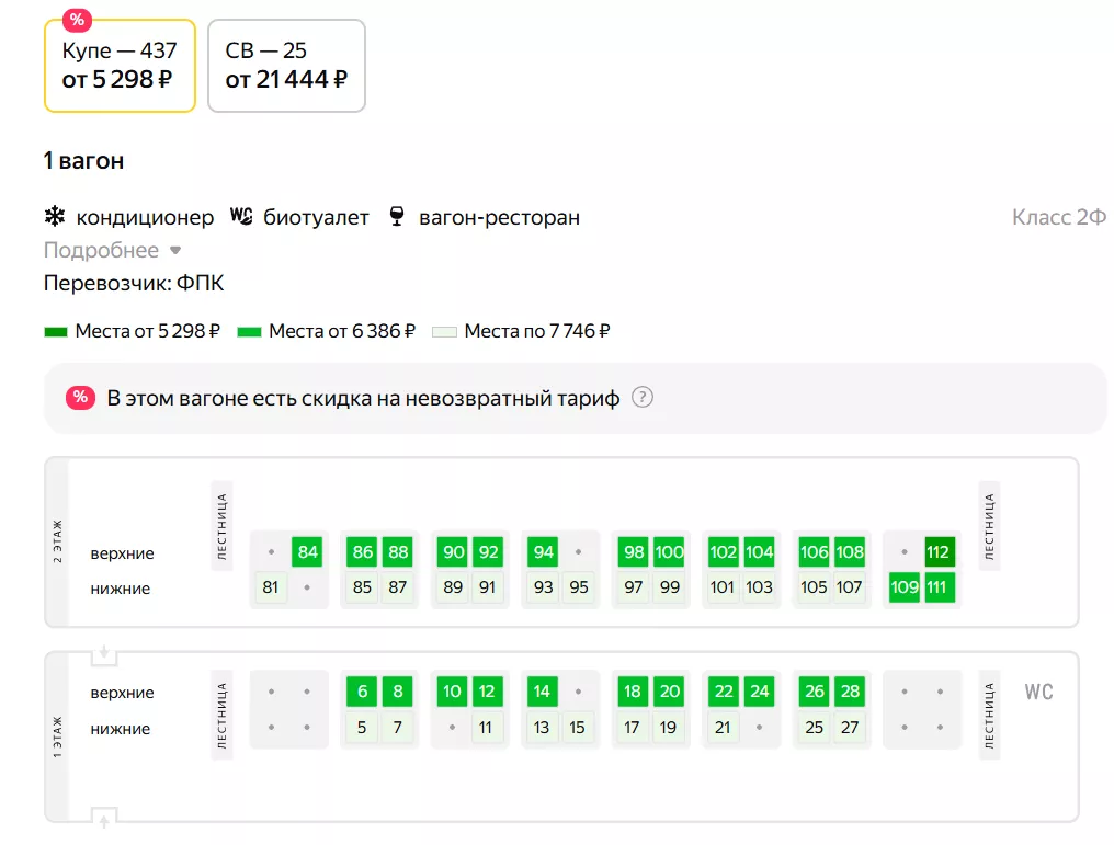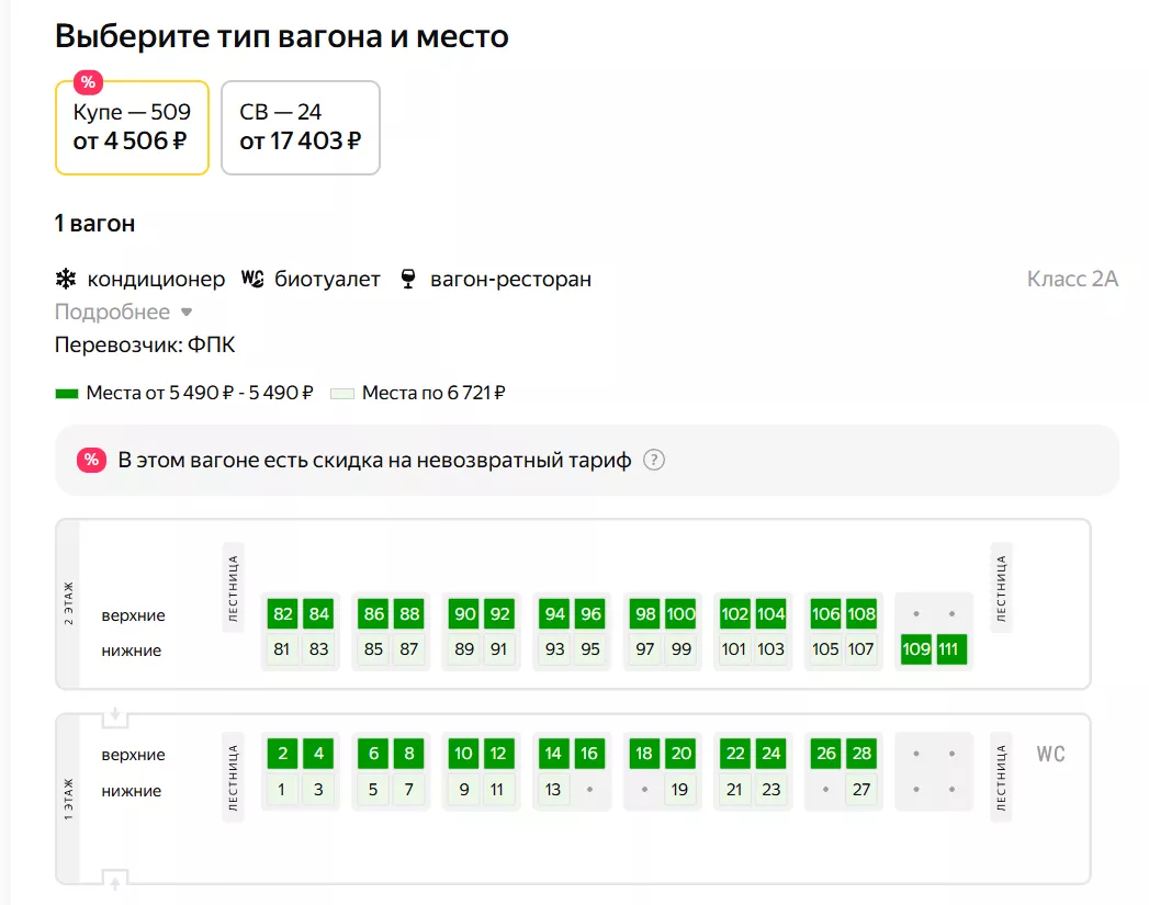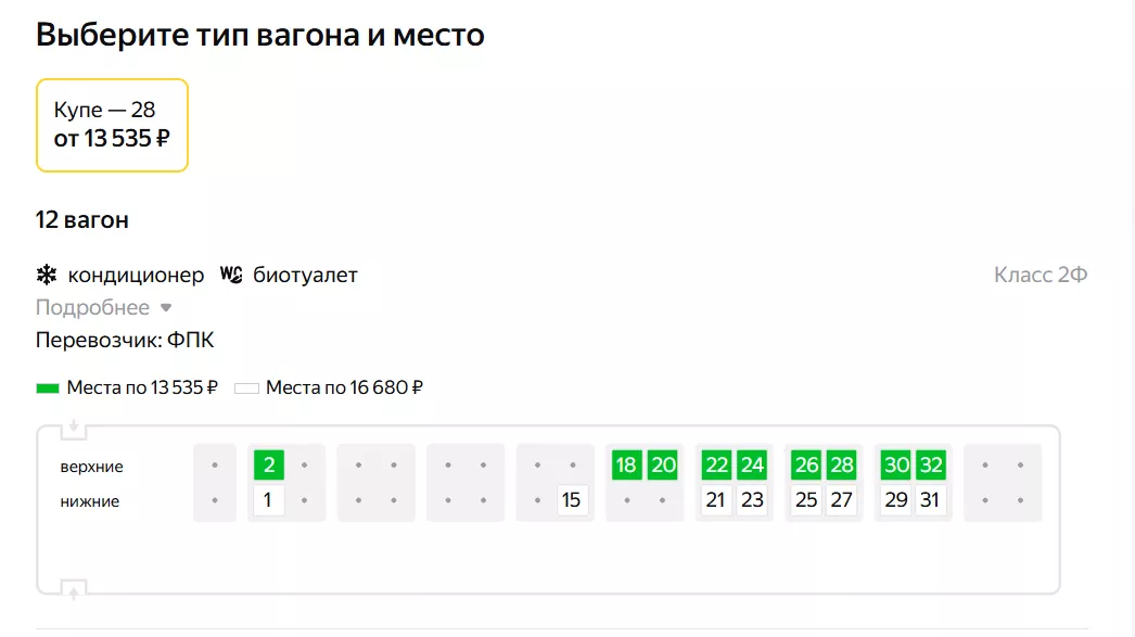 А 1 января билеты уже дороже, 13,5 тысячи рублей, так как доступны лишь купе. С каждым днем и их количество уменьшается.