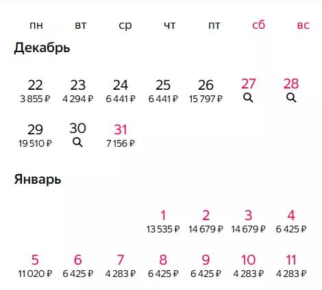 Из Москвы, например, уехать за адекватную стоимость можно только 31 декабря.