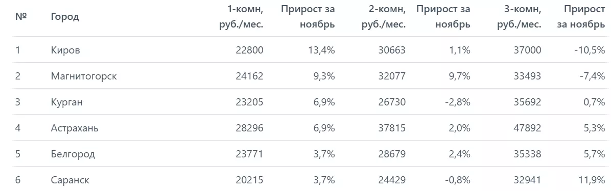 В целом по России однокомнатное жилье подешевело на 0,5 % и стоит 27 774 рубля в месяц. Двухкомнатное также снизилось на 0,5 %, до 34 782 рублей. Трехкомнатные квартиры упали на 0,9 %, их средняя стоимость теперь 43 551 рубль в месяц.