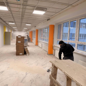 В школе № 22 ремонт на третьем этаже вышел на финальную стадию, основные силы теперь переведены на второй этаж. Работы идут даже в выходной день, однако текущие усилия все еще не позволяют полностью компенсировать накопившееся отставание. За последний месяц темпы заметно выросли, но вопрос ликвидации прежнего срыва сроков остается актуальным.