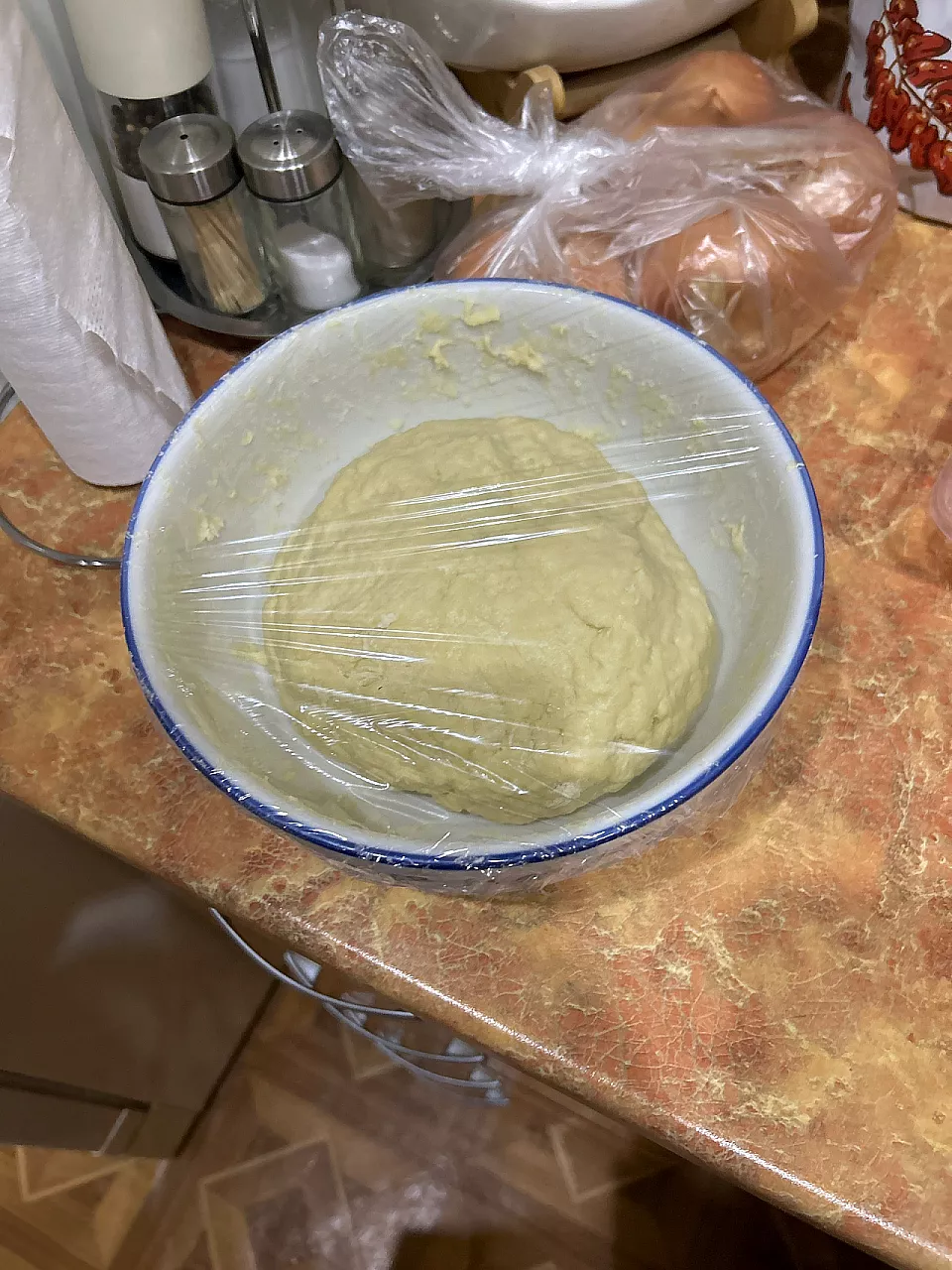 Готовое тесто заверните в плёнку и оставьте на 15 минут, чтобы оно «отдохнуло» и стало мягче в работе . Затем разверните, разделите пополам, из каждой части скатайте «колбаску» и нарежьте небольшими кусочками весом примерно 35–40 г. Каждый кусочек раскатайте в тонкую лепёшку толщиной 2–3 мм и диаметром около 10 см — это оптимальный размер для маленького пирожка на пару укусов.