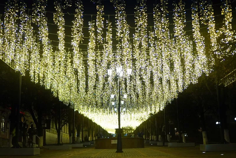 Чебоксары готовятся к Новому году. Город уже украсили яркой иллюминацией. Например, на бульваре Купца Ефремова смонтировали световой потолок из 320 тысяч светодиодов площадью 1600 квадратных метров. Кроме того, в парках уже установили новогодние украшения и арт-объекты.