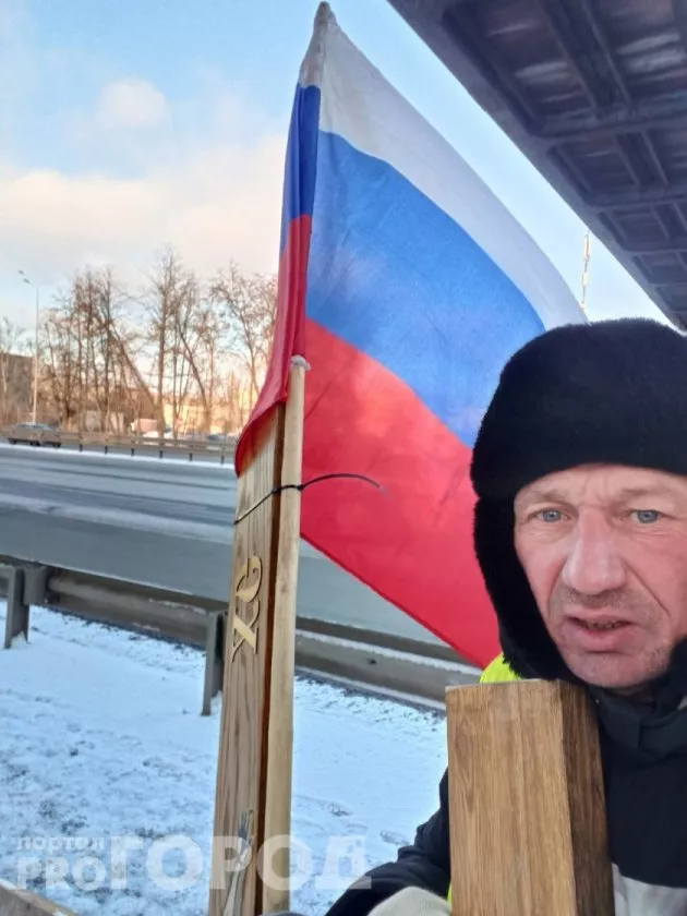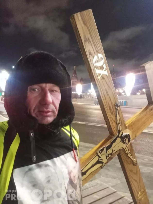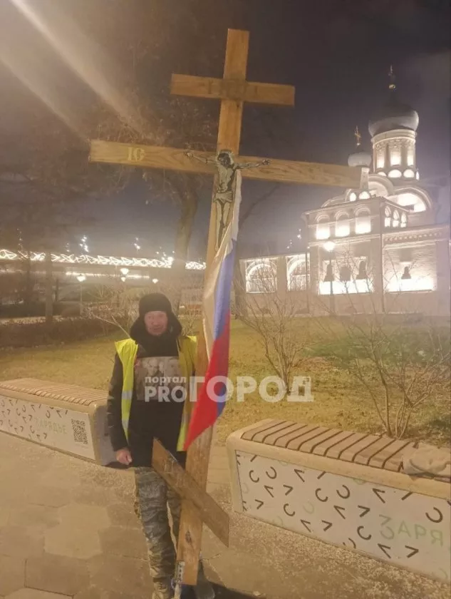 Житель Чувашии завершил крестный ход в поддержку бойцов СВО и дошел с крестом до Кремля