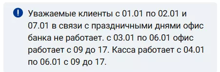 Офисы банков закрываются на период с 31 декабря по 7 января. Работать в эти дни будут в основном дежурные отделения банков по особому графику.