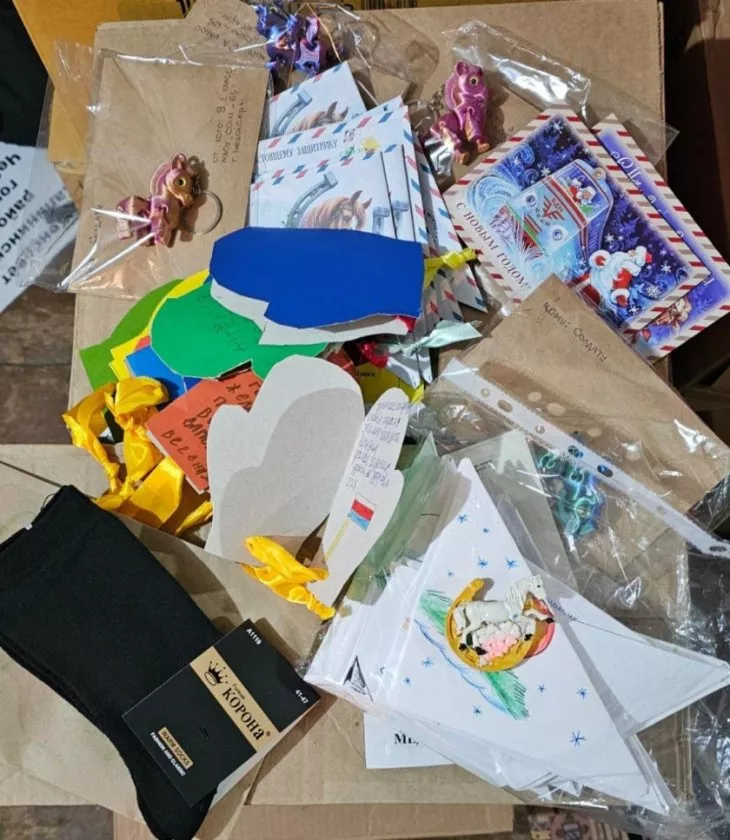 Кроме средств личной гигиены, медикаментов, одежды и продуктов, бойцам также отправили огромное количество открыток и писем с добрыми пожеланиями и поздравлениями, новогодние сувениры и сладости.