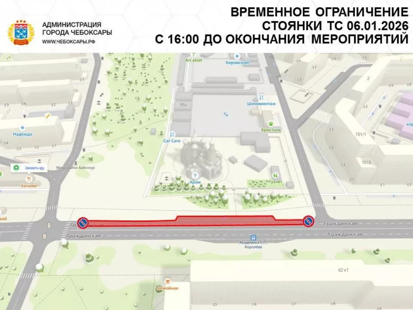 На время рождественских богослужений в Чебоксарах запретят парковаться возле нескольких храмов. Ограничение действует с четырех часов дня 6 января до завершения праздничных мероприятий 7 января. Об этом сообщает глава города Станислав Трофимов.