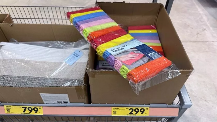 Из полезного для уборки — набор из 14 салфеток из микрофибры за 299 ₽. В пересчёте на штуку это чуть больше 20 ₽, тогда как поштучно в хозяйственных магазинах микрофибра часто стоит 40–60 ₽ и выше. Набор закрывает сразу все задачи: кухня, ванная, стекло, пыль, техника. Многие берут по два набора: один для дома, второй — на дачу или в машину. Для тех, кто устал стирать старые тряпки, проще один раз купить большой комплект и на пару месяцев забыть о необходимости докупать салфетки.