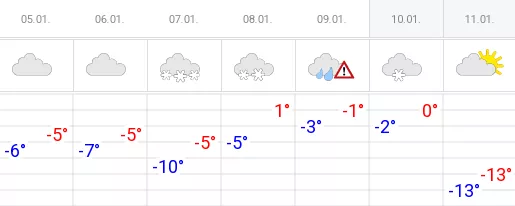 В субботу почти во всех районах Чувашии осадки снова будут в виде снега. Полностью непогода закончится только к воскресенью. В этот день впервые за длительное время появится солнце и начнется похолодание, которое затянется на всю следующую неделю. С 12 по 18 января днем температура составит от 10 до 15 градусов мороза, а в ночные часы воздух будет охлаждаться до 20–25 градусов ниже нуля.