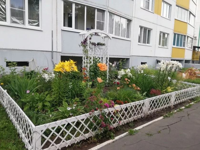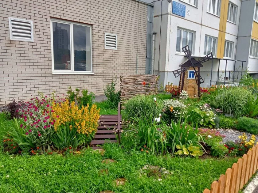 Жители вместе с управляющей компанией сажают цветы на клумбах и делают украшения для двора своими руками. Летом прошлого года этот же дом уже получил награду в городском конкурсе за лучшее озеленение.