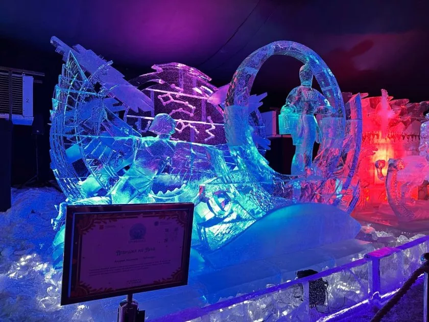 Работа чувашского мастера Андрея Молокова привлекла особое внимание посетителей. Его скульптура создана по мотивам народной сказки "Девушка на Луне". Зрители отметили точность деталей и высокий уровень исполнения. Скульптор смог передать во льду атмосферу старинной чувашской сказки.
