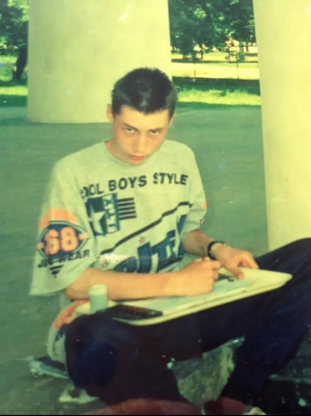 Он ходил с друзьями в кинотеатр "Победа", рисовал граффити в подъездах и иногда попадал в переделки.