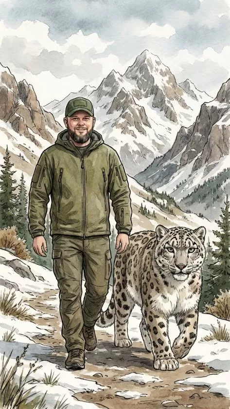 "Рядом с моим мужем в кадре всегда идет Барс как дух-хранитель, олицетворение его сильного характера. Это неслучайно, так как снежный барс – национальный символ Северной Осетии, его родной земли", – рассказывает Ольга.