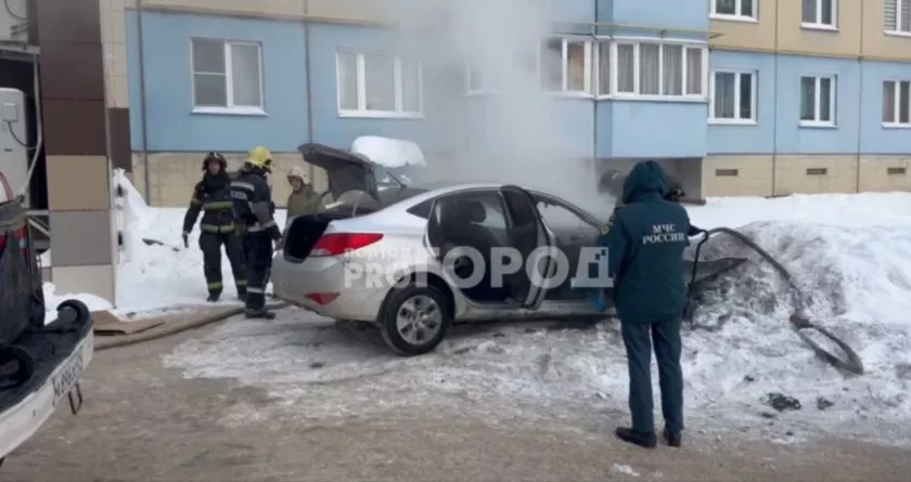 В Чебоксарах во дворе многоквартирного дома загорелось легковое авто