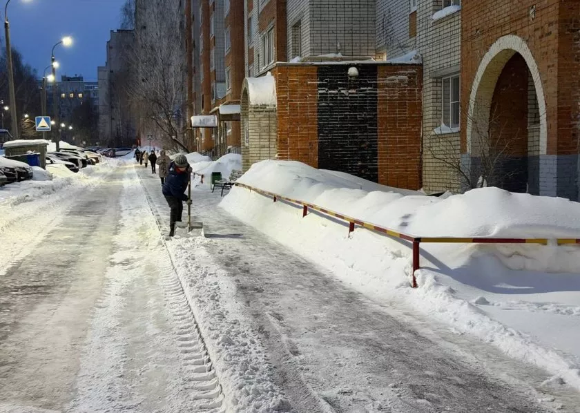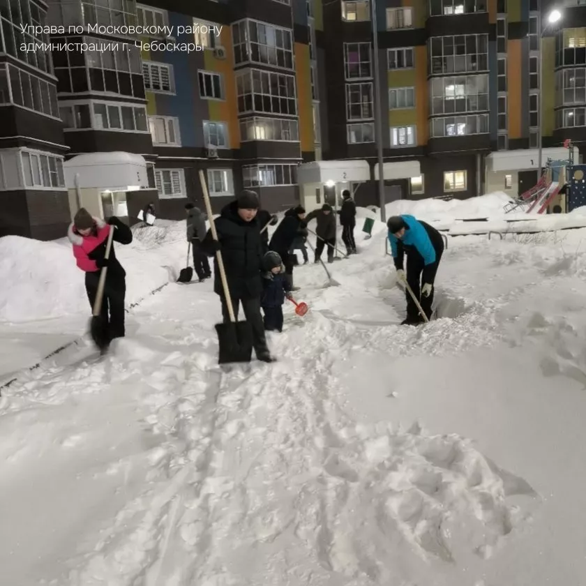 Жители и коммунальные службы Чебоксар вместе чистят дворы после снегопада