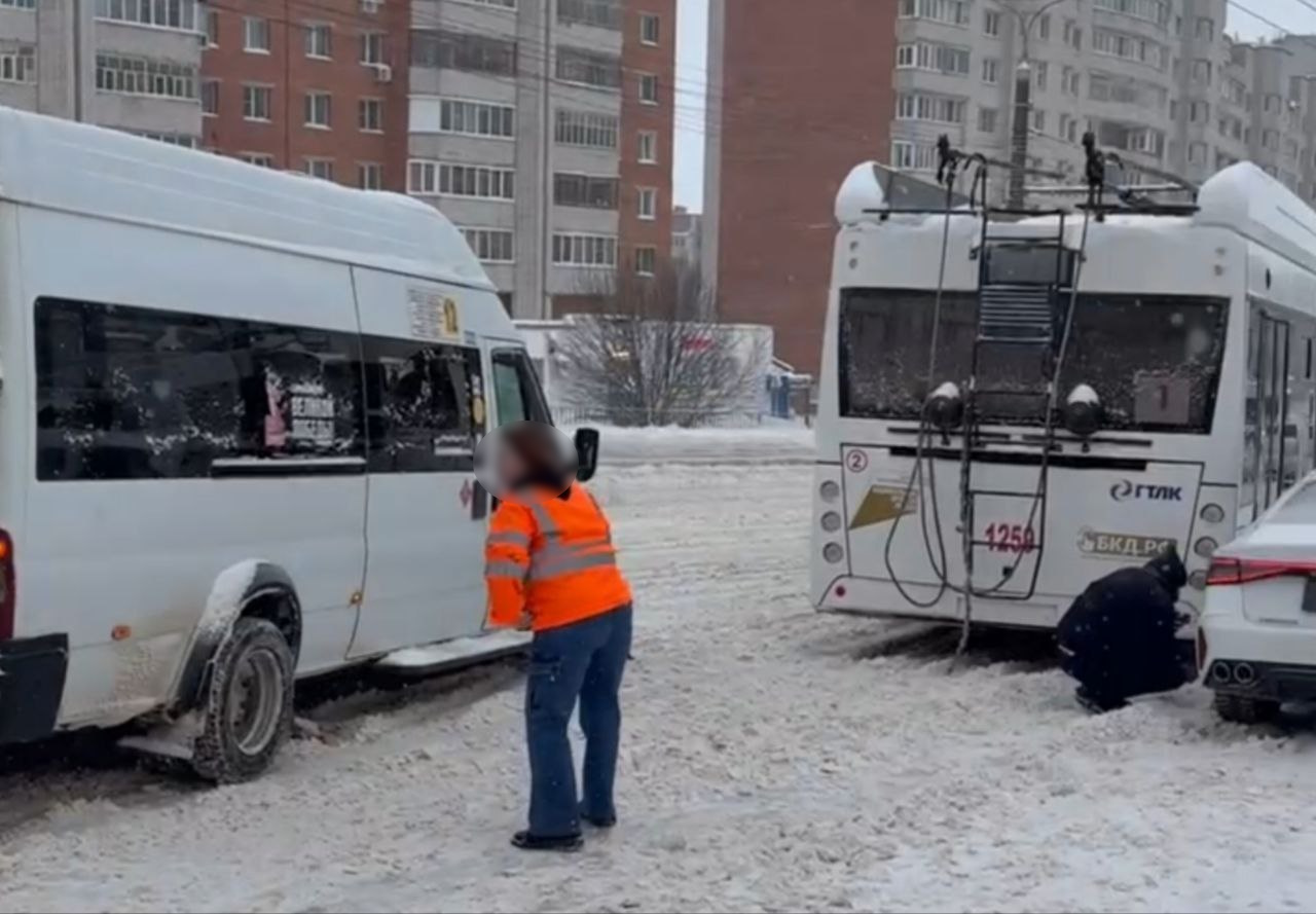 В Чебоксарах в Северо-западном районе на остановке произошло столкновение двух троллейбусов, маршрутки и легковушки