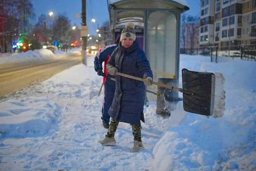 Муниципальные служащие, директора и сотрудники предприятий, а также депутатский корпус во главе с мэром города Станиславом Трофимовым утром вышли на "зимний субботник".