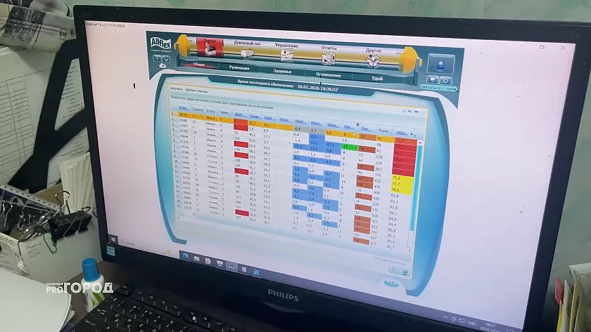 “Придя на работу мы в первую очередь включаем компьютер и смотрим программу управления стадом. Благодаря специальным трекерам на коровах, можно отследить все их действия и отклонения от нормы - если корова начинает меньше ходить, меньше есть, программа сообщает об этом и мы проверяем, что с ней может быть не так. А еще в программе у нас все запланированные работы на много дней вперед”, - рассказывает специалист.