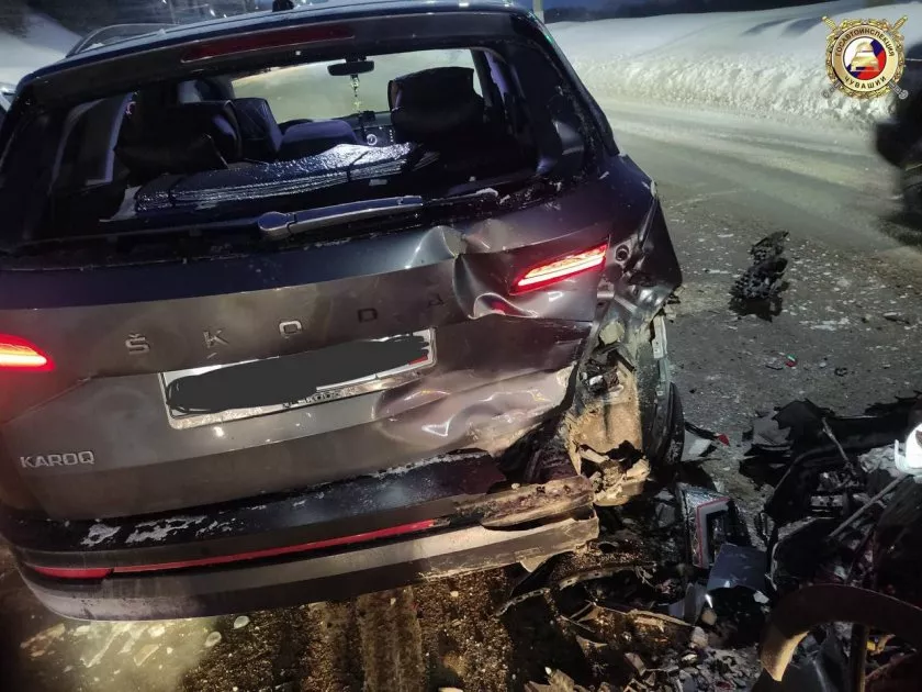 Морозным утром в Чебоксарах столкнулись две иномарки: в больницу увезли пассажирку
