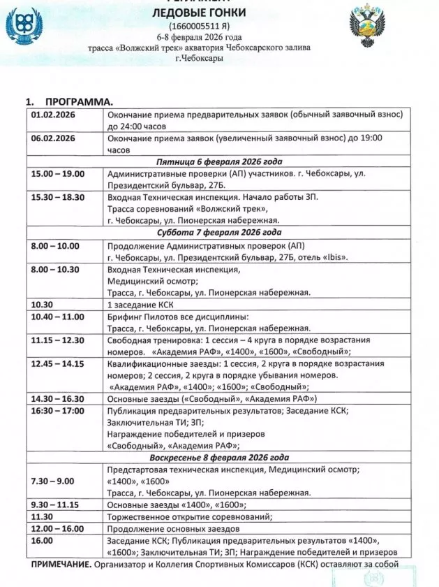 Пилоты будут выступать в четырех классах: "1400", "1600", "Академия" и "Свободный". В субботу и воскресенье заезды будут проходить с 09:00 до 16:00, в это время планируются и квалификации, и основные старты.