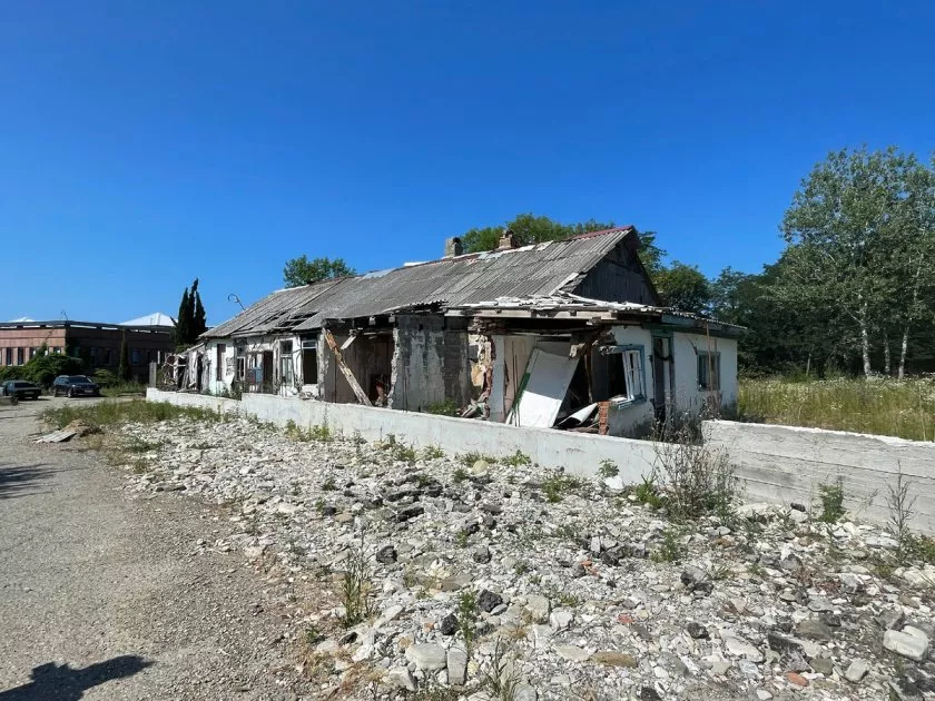 Первый дом у въезда оказался жилым, напротив — заброшенный. Потом ещё один. Потом — целая полоса «заброшек», которые стоят рядом с домами, где есть новые заборы, пластиковые окна, кондиционеры и припаркованные авто. И от этого становится ещё неуютнее: не «вымерло всё», а будто люди остались по инерции — живут как могут и как есть, без попытки превращать участок у моря в курортную мечту. Вокруг тишина, заросли по пояс, садовые деревья, которые кто-то когда-то посадил “на годы”, а сейчас они выглядят как напоминание: тут планировали жить долго.