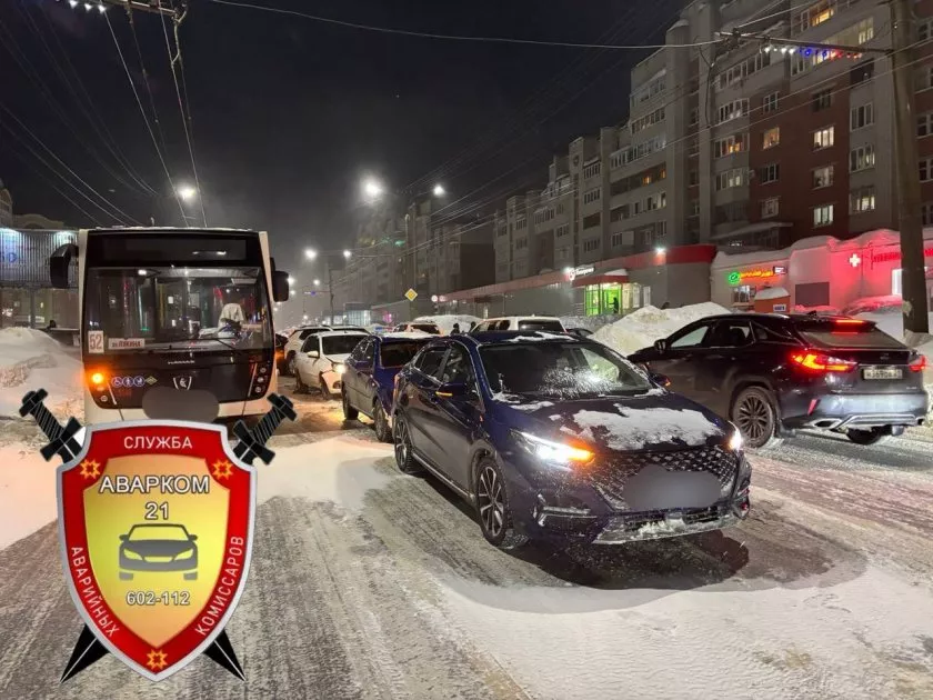В Чебоксарах на улице Максима Горького произошло массовое ДТП с участием нескольких машин и автобуса. На месте работают сотрудники ДПС. Об этом сообщают народный корреспондент и проект "Город грехов".