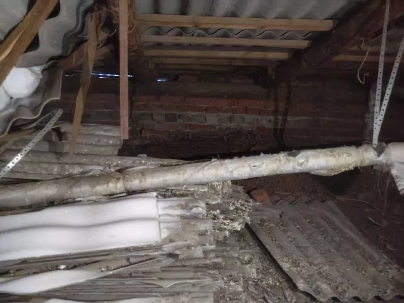 Осмотр показал, что у дома не только обрушилась крыша, но и получила повреждения система отопления, из-за чего в одном из подъездов временно нет теплоснабжения.