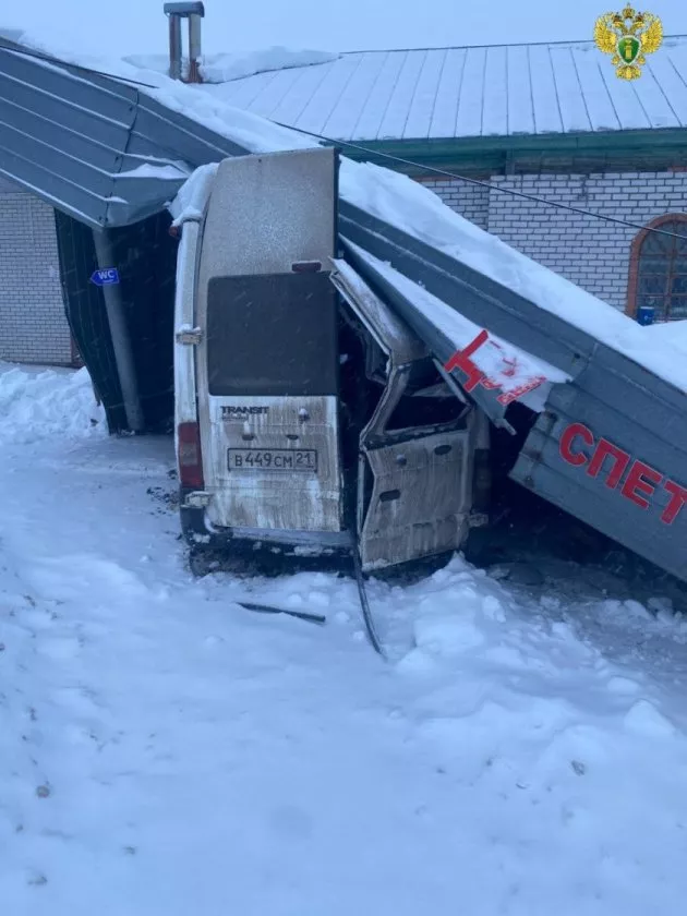 В Аликово рухнувший от снега навес раздавил маршрутку