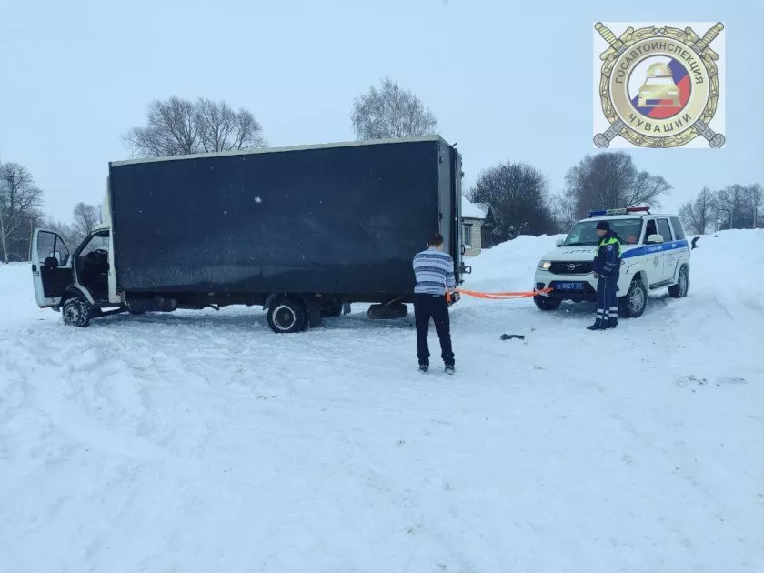 В похожей ситуации в Шумерлинском районе сотрудники ОГАИ справились уже без посторонней помощи - заметив застрявшую на развороте “Газель”, они взяли ее на буксир своего “УАЗа” и помогли выехать.