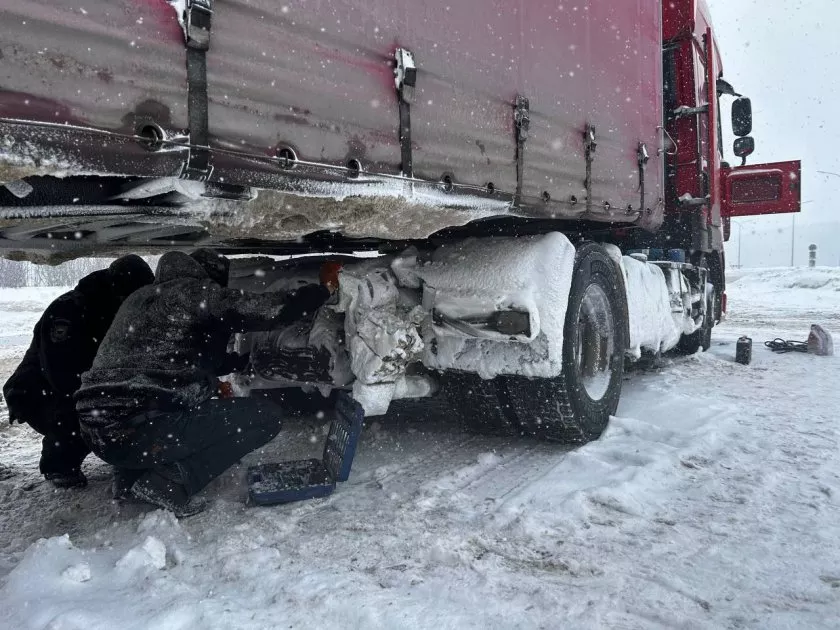 На выручку пришли инспекторы Михаил Железтов и водитель дежурной части Станислав Тютев: они съездили за запчастями и вместе починили тягач, освободив дорогу.