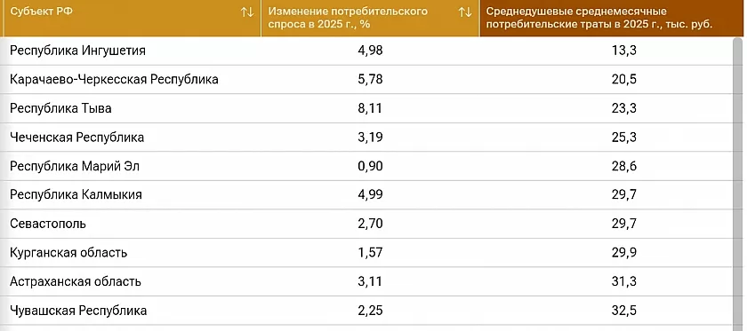 При этом средние ежемесячные траты на одного жителя Чувашии в 2025 году составили всего 32,5 тысячи рублей. Это десятое снизу положение в рейтинге. Хуже обстоит дело только в Тыве, Марий Эл, Калмыкии, Севастополе, Курганской и Астраханской областях, а также в ряде северокавказских регионов страны.
