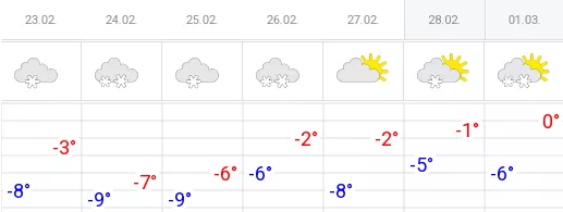 В пятницу и субботу атмосферное давление вырастет до 755 миллиметров ртутного столба, так что осадки в эти дни прекратятся. В выходные немного потеплеет, однако 1 марта снегопад возобновится.
